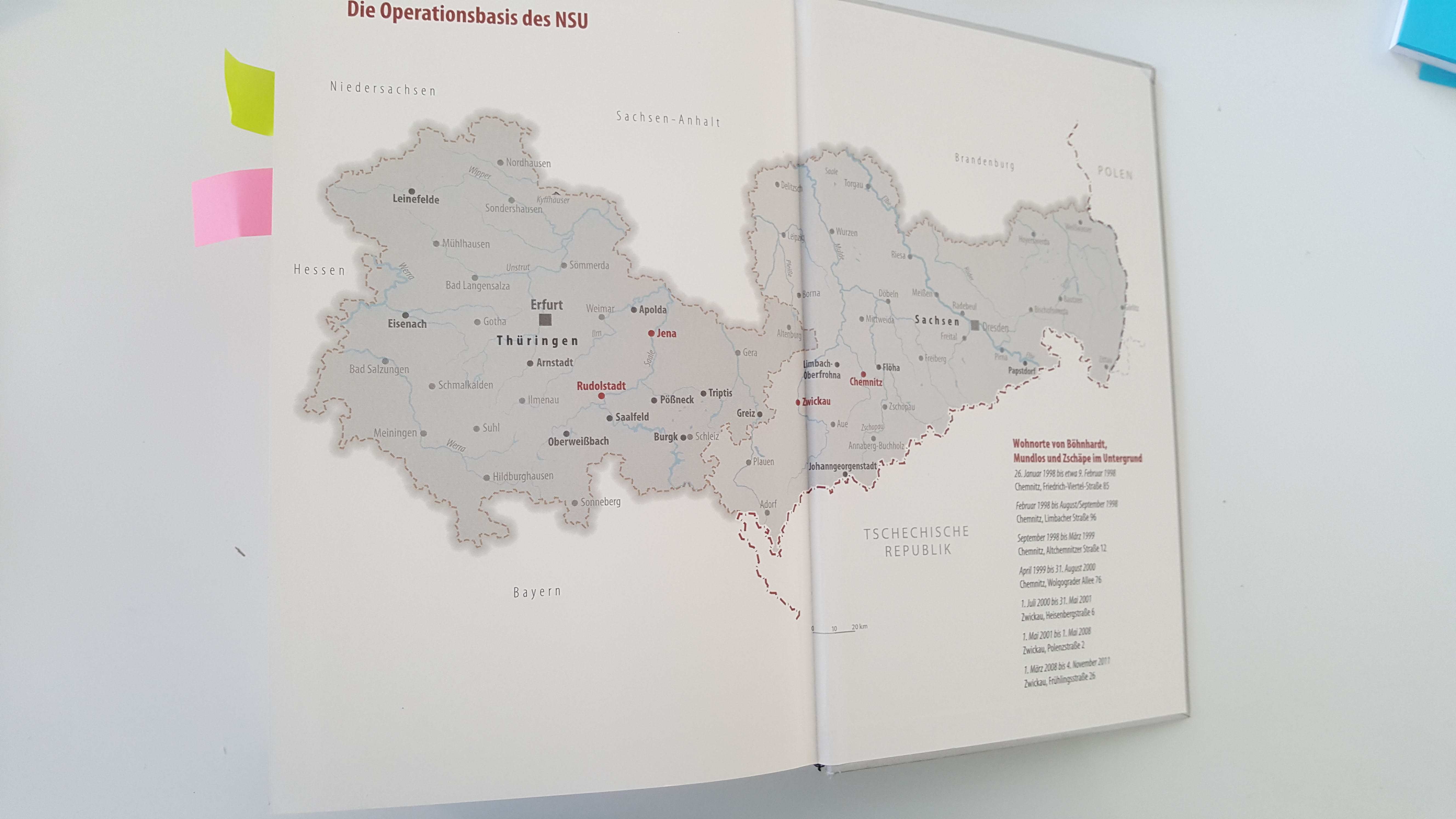 Gut finde ich außerdem die Karten auf den Umschlaginnenseiten mit den Orten und Daten der Anschläge und Banküberfälle und der Wohnorte, weil man ansonsten doch ziemlich durcheinanderkommt.