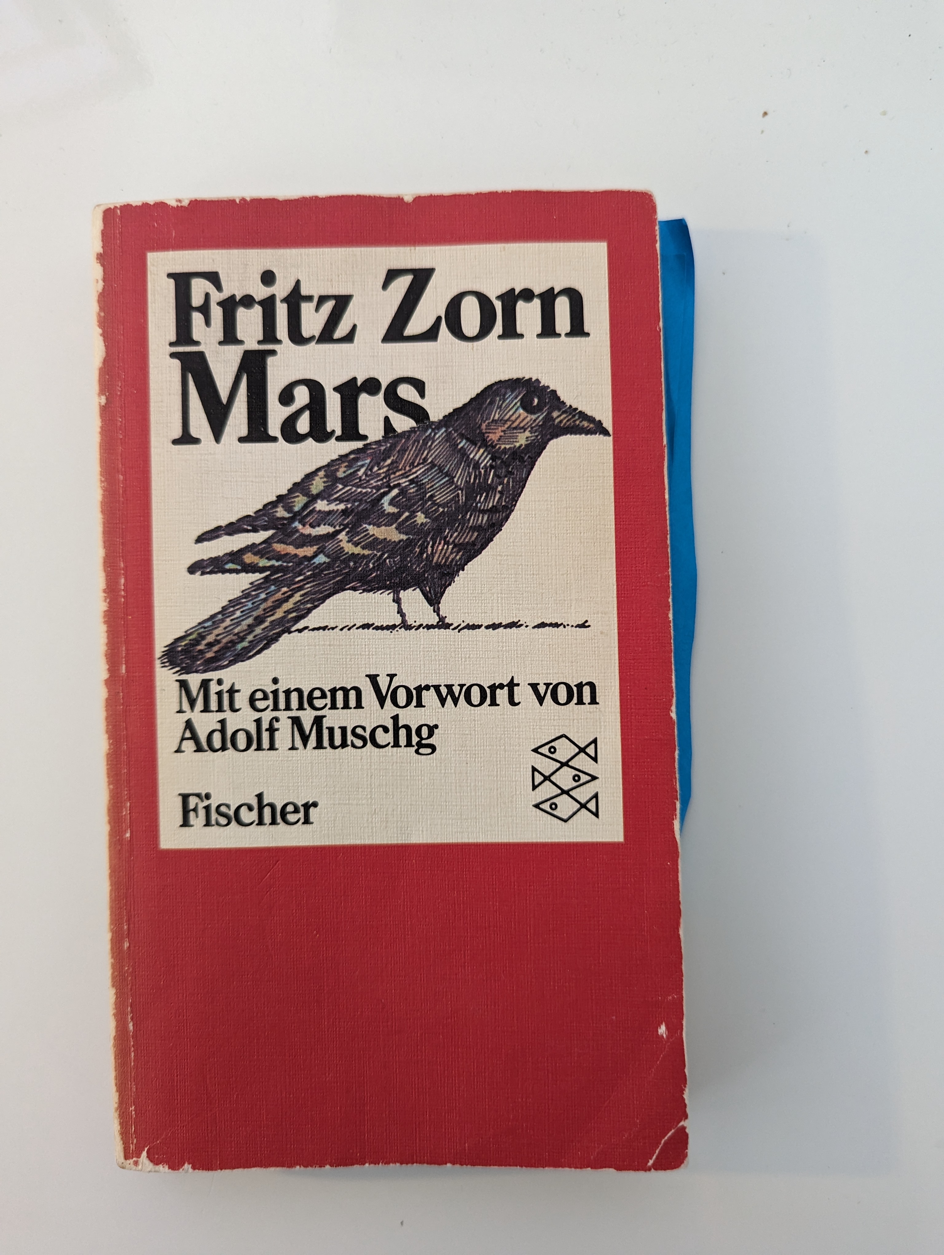An dieser Stelle ein kleiner Exkurs. Es wird nämlich bezüglich der Krebserkrankung der Schwester und des Richterkollegen auf das Buch „Mars“ von Fritz Zorn Bezug genommen, ein Buch, das ich gewissermaßen als „Beifang“ gelesen habe, das aber dennoch wirklich interessant war.