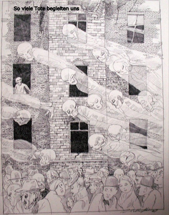 Die bei den Bombenangriffen im Luftschutzkeller Umgekommenen.