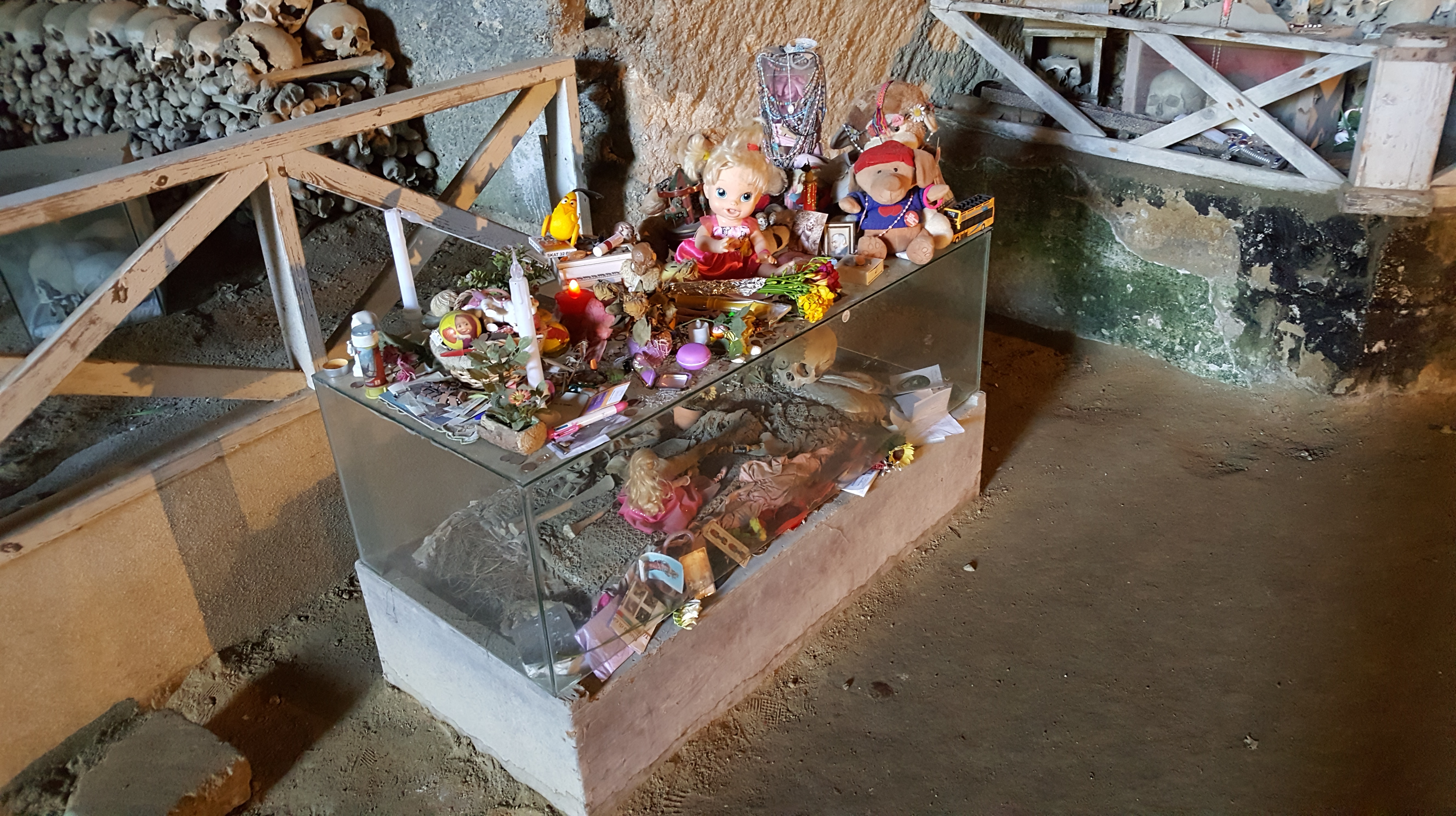 In einer Höhle aus Tuffstein, deren Eingang sich gähnend öffnet, befindet sich ein Beinhaus, der Cimitero delle Fontanelle. Dort wurden – ähnlich wie bei den Katakomben in Paris – die Gebeine aus Friedhöfen transferiert, die bei der Vergrößerung der Stadt im Weg standen.